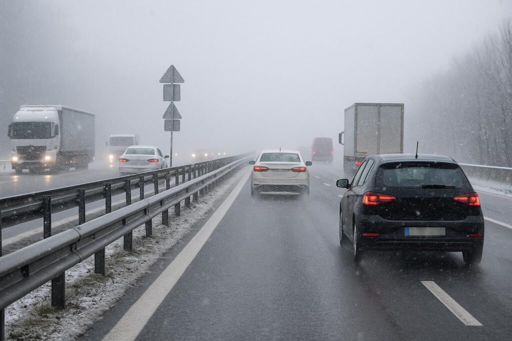 Súčasná kombinácia sneženia a vetra vytvára vhodné podmienky pre vznik javu známého ako biela tma. Ide o situáciu, keď sa obloha spojí so zasneženým terénom do jednoliatej plochy bez kontrastov. Vodič v takomto prostredí stráca schopnosť odhadnúť vzdialenosť, nevidí okraje cesty a môže mať klamlivý dojem pohybu alebo státia.