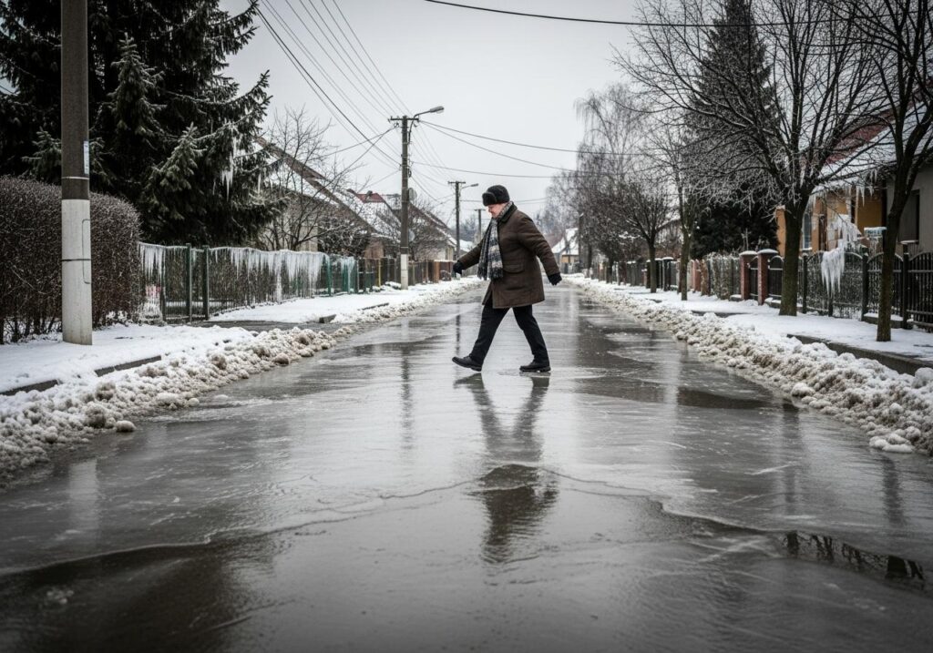 Najväčší zvrat prišiel v noci na štvrtok, keď podľa Markízy prenikol na Slovensko studený vzduch. Teplota na stanici Sliač klesla okolo šiestej ráno na približne mínus 4,2 stupňa Celzia a voda rozliata po meste zamrzla. Na cestách, dvoroch aj chodníkoch sa vytvorila rozsiahla poľadovica, ktorá predstavuje ďalšiu hrozbu pre vodičov aj chodcov.